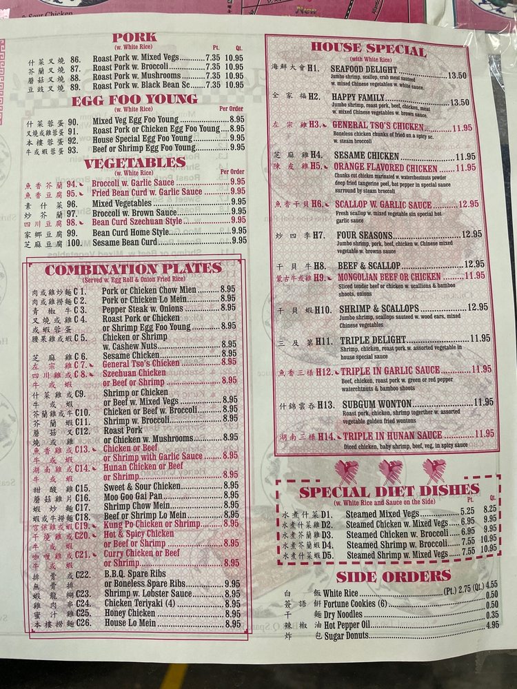 Introducing the menu at New China King, a Chinese restaurant located in Raleigh, NC, offering a variety of dishes for both lunch and dinner. Customers have praised the hot and fresh chicken with broccoli combo, pork lo mein, and shrimp rolls, reminiscent of NYC Chinese restaurants. The menu includes options for groups and kids, with outdoor seating available. While the prices are noted as a bit higher, the quality of food and service make it worth it. The staff, including a friendly female cashier, provide excellent service even close to closing time. The egg rolls are a standout, not greasy like other places. Note that the restaurant accepts cash only. Overall, New China King delivers on delicious Chinese cuisine, friendly service, and a satisfying dining experience.